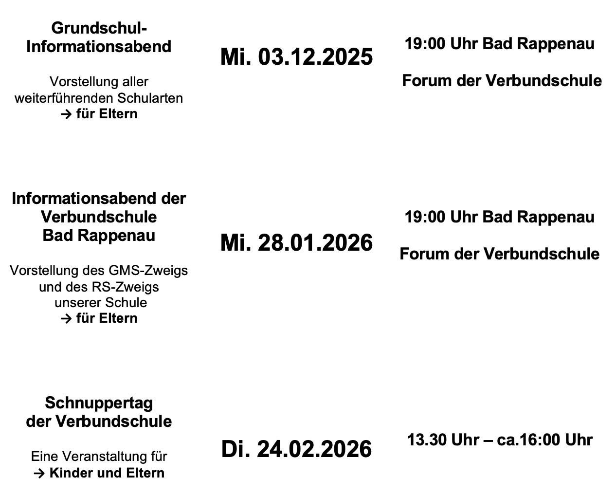 Informationsveranstaltungen für die Erziehungsberechtigten der Schüler/innen aus den 4. Klassen