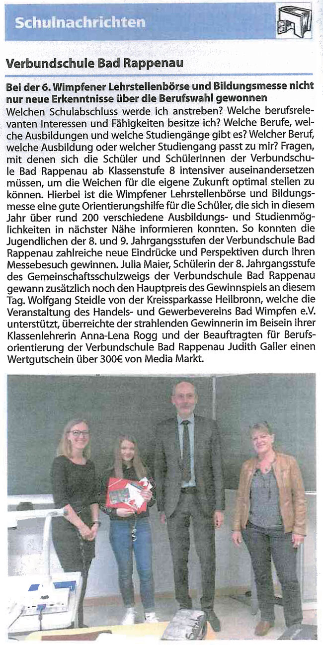 11.04.2019 Verbundschule bei der 6. Wimpfener Lehrstellenbörse