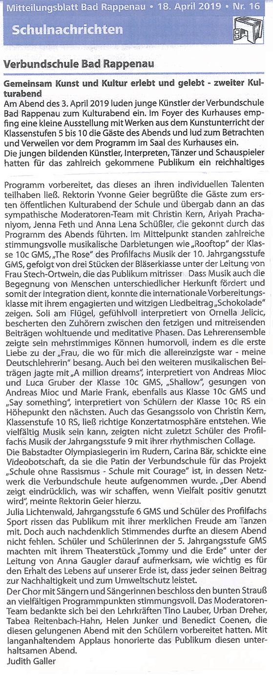 18.04.2019 Gemeinsam Kunst und Kultur erlebt und gelebt - zweiter Kulturabend