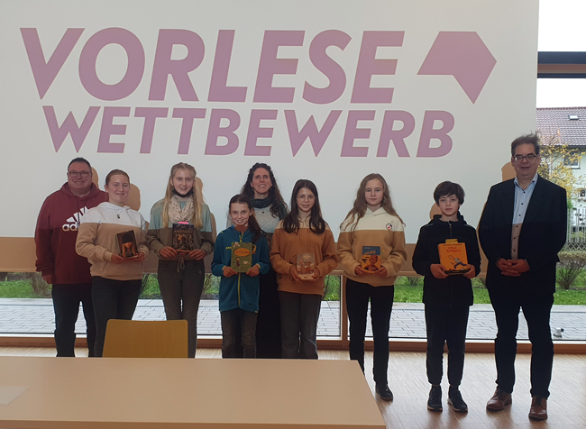 Weiterhin nahmen als Klassensiegerinnen- und -sieger teil: Vincent Fauth, Luisa Mayer, Mia Schill, Marina Winter sowie Alina Merkle. Es war somit ein Wettstreit unter Siegerinnen und Siegern, denn wer gerne und viel liest, gewinnt mit jedem weiteren Buch einen Erfahrungsschatz.
