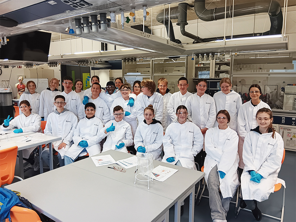 Der Kurs wurde von Frau Schmidt und Herrn Herzog geleitet. Sie zeigten den Schüler*innen, was bei der Verdauung passiert und leiteten die 8.-Klässler zu verschiedenen Experimenten an. Insgesamt standen vier verschiedene Versuche von der Speiseröhre bis in den Dickdarm auf dem Programm.