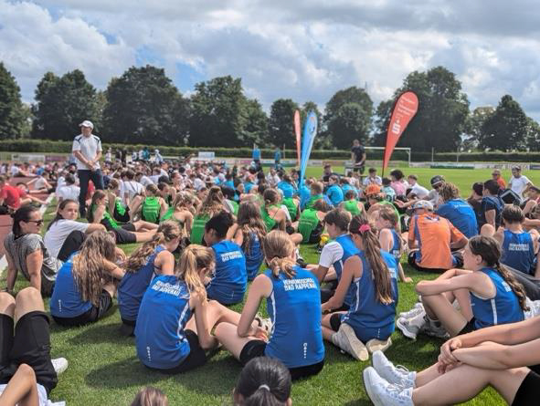 Dieses Landesfinale fand am 11. Juli 2024 in Donaueschingen statt. Bereits um 6.15 Uhr machten sich 38 Schüler:innen, begleitet von vier Lehrkräften, mit dem Bus auf den Weg. Mit der hochklassigen Konkurrenz aus dem ganzen Ländle wurde nach einer Ehrenrunde motiviert in die Wettkämpfe gestartet. Die 500 Athletinnen und Athleten feuerten sich begeistert an und trieben sich zu neuen persönlichen Bestleistungen.