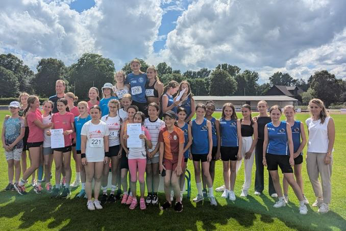 Ganz ohne Gegner wurde jedoch nicht gelaufen, geworfen und gesprungen: Die Schüler:innen des Schulzentrums Rudersberg stellten sich als starke Konkurrenz heraus. Kewin Miculit (RS 9c) blieb mit 4,93 Metern nur knapp unter den fünf Metern beim Weitsprung. Lena Druschky (RS 8c) sprintete die 75m in 11,09 Sekunden und war damit die schnellste Rappenauerin. Leonie Aberle (RS 6c) sammelte mit 1103 Punkten bei den „kleinen“ Mädels die meisten Punkte für ihr Team. Und genau darauf kommt es für jede Teilnehmerin und jeden Teilnehmer an: Beim Dreikampf möglichst viele Punkte zu ergattern, die alle ein eine Teamwertung einfließen. Janne Rödler (RS 6b) stellte die schnellste 800m Zeit des Tages auf: 2 Minuten 36 Sekunden – und das als Zwölfjähriger – bedeuteten nochmals Extrapunkte fürs Team. Und auch beim abschließenden Staffelsprint über 4x50m bzw. 4x75m konnte das im Schultraining geübte Wechselprozedere auf die Bahn gebracht werden, die Verbundschüler:innen flogen nahezu ins Ziel.