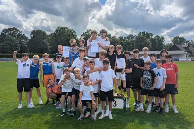 Trotz respektablen 10993 Gesamtpunkten landeten die “großen” Jungs (Jg. 2009/2010) nur auf Platz 10. Die Mädels des gleichen Alters erkämpften sich in einem mit Vereinsathletinnen gespickten Wettkampf Platz 8. Die “kleinen” Mädels (Jg. 2011-2012) konnten nahezu gleich viele Punkte sammeln wie im Kreisfinale und erreichten mit 9401 Punkten das Treppchen: 3. Platz! Und trotzdem war ein kleines bisschen Enttäuschung zu spüren, denn den 2. Platz hätte es gebraucht, um sich für den Bodensee-Schulcup zu qualifizieren, den höchsten Wettkampf der Gemeinschafts- und Realschulen. Liebe Mädels, ihr könnt mehr als stolz sein auf eure Leistungen! Die Jungs der gleichen Wettkampfklasse, letztes Jahr noch auf dem 3. Platz, hatten mit 10021 Gesamtpunkten nur 65 Punkte weniger als der Sieger aus Ofterdingen und feierten sich und das Erreichen des 2. Platzes. Somit dürfen sie das Land Baden-Württemberg vom 26.-28. September 2024 beim Bodensee-Schulcup vertreten und gegen Bayern, Kantone der Schweiz und Bundesländer Österreichs antreten – ihr könnt mächtig stolz auf euch sein!