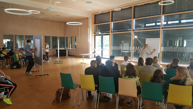 Schüler schlugen vor, dass man auf das „Fairtrade“-Zeichen achtenkönnte oderweniger Abfall produzierensollte. „Gegenstände kann man auch Mal reparieren, bevor man sie wegwirft“, war einer der spontan gefundenen Lösungsansätze. Schülerinnen und Schüler sollten Anregungen bekommen zu Hause, in der Schule und der Gemeindeaktiv zu werden. Möglichkeit dazu erhalten die Schülerinnen und Schüler bereits an der Verbundschulein Aktionen, wie dem Stadtradeln, Baumpflanzaktionen und der Schülermitverantwortung.